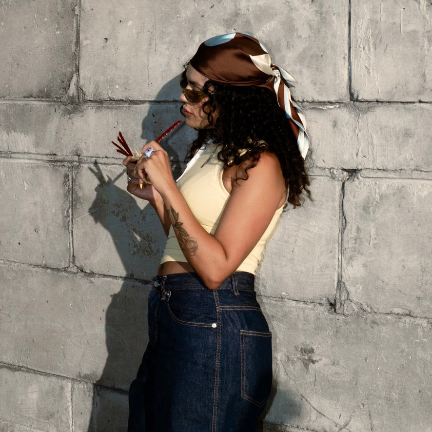 Crafted from premium silk with a smooth hand feel and natural silky shimmer. Designed for versatile wear — around the neck, head, wrist, or bag.